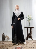 - Lengan manset karet double layer dengan bahan cotton embroidery = wudhu friendly